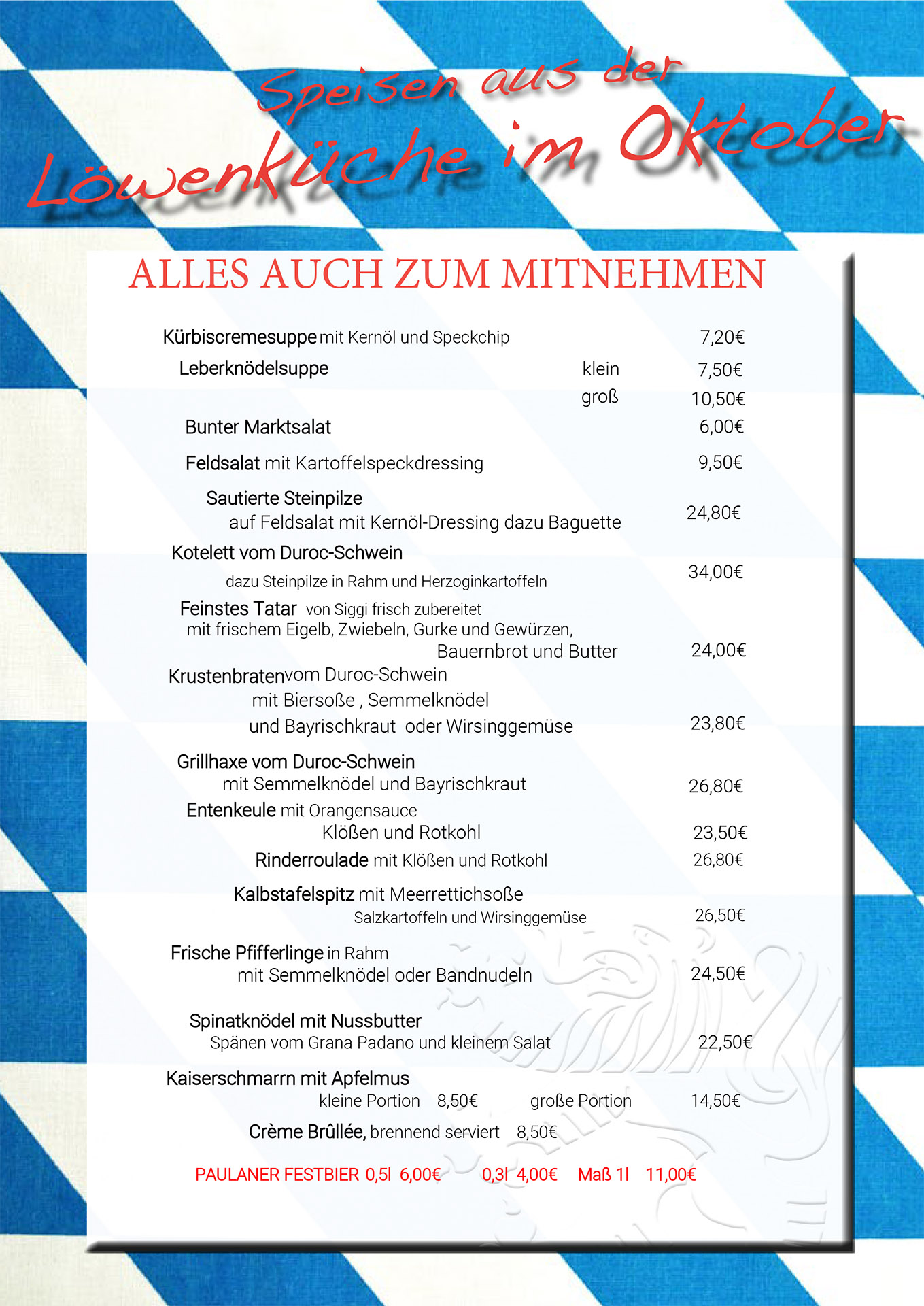 Löwenküche im Oktober Alles auch zum Mitnehmen Einfach draufklicken zum Vergrößern